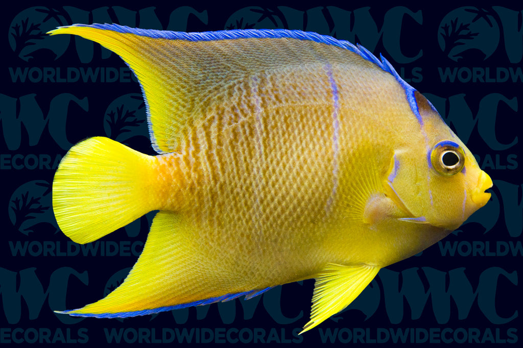 Angelfish come in a large array of colors, patterns and sizes that make them very sought-after. Unlike Centropyge angels, this genus is known for having large adult sizes. The Blue Angel is a beautiful fish that can be the highlight of your display, but they do require some specific care. This fish can be shy at first especially during acclimation, so providing a lot of hiding places will help reduce its stress. Because their natural diet is so varied, aquarists should always feed a diet that is similarly well rounded; it further means they are unsuitable for most "captive reef" style aquariums. In the wild, they generally feed on a wide variety of algae, sponges, tunicates and other benthic organisms. Their natural diet also includes nipping on corals, so the Blue Angel is not considered reef safe. They will grow to be about a foot, three inches in size and will need an aquarium of about 200 gallons when they are fully grown. Like many other Angelfish, these go through complete color morph from juveniles to adults. The Blue Angelfish are found in the Western Atlantic Ocean. They inhabit coral rich areas of lagoons and outer reef slopes up to 93 meters deep.
